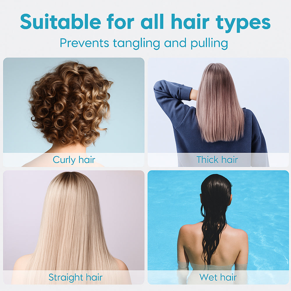 Uansett om du har tykt, tynt, langt, kort, rett eller krøllete hår, er denne børsten et pålitelig valg. Den passer både til hjemmebruk og profesjonell salongbruk – og kan brukes av både barn og voksne.