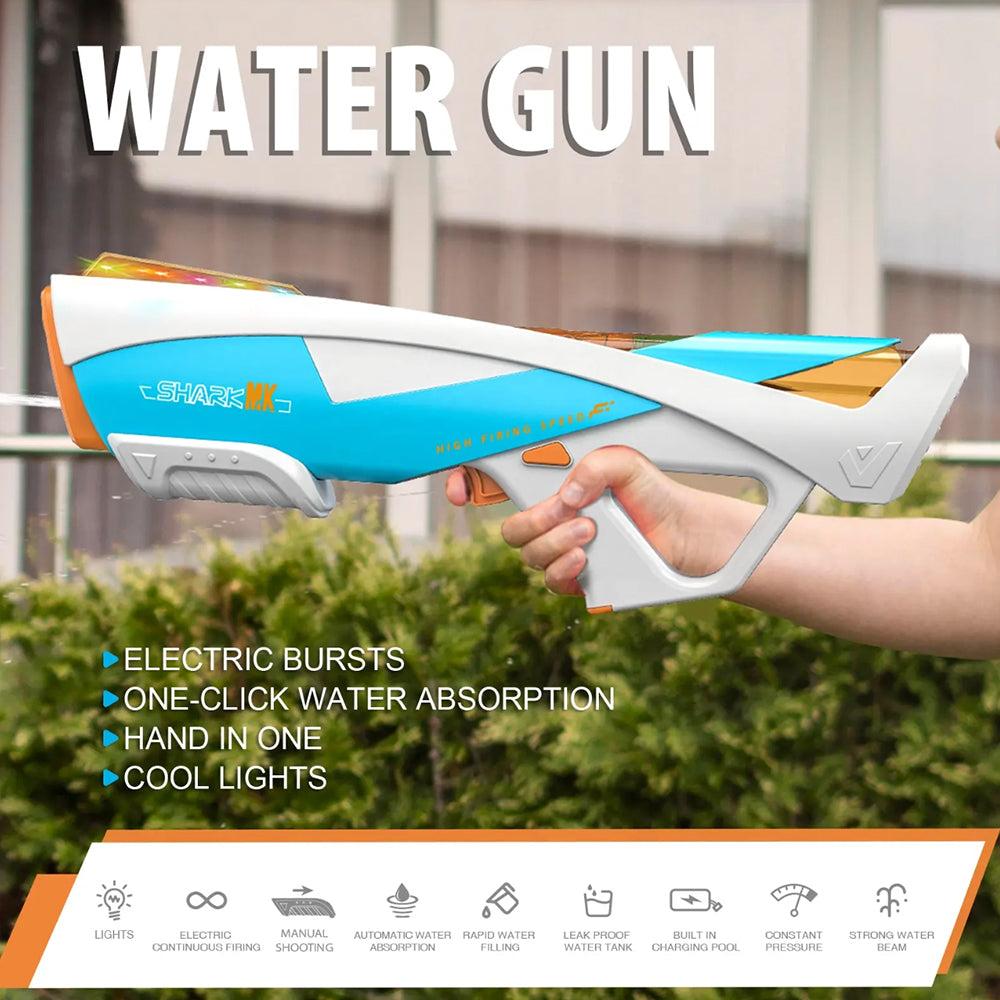 Enten du er ved bassenget, på stranden eller i hagen, er SHARK MK den perfekte vannpistolen for sommerens vannleker.  Med sin automatiske funksjon og kraftige ytelse tar den vannleken til et nytt nivå.