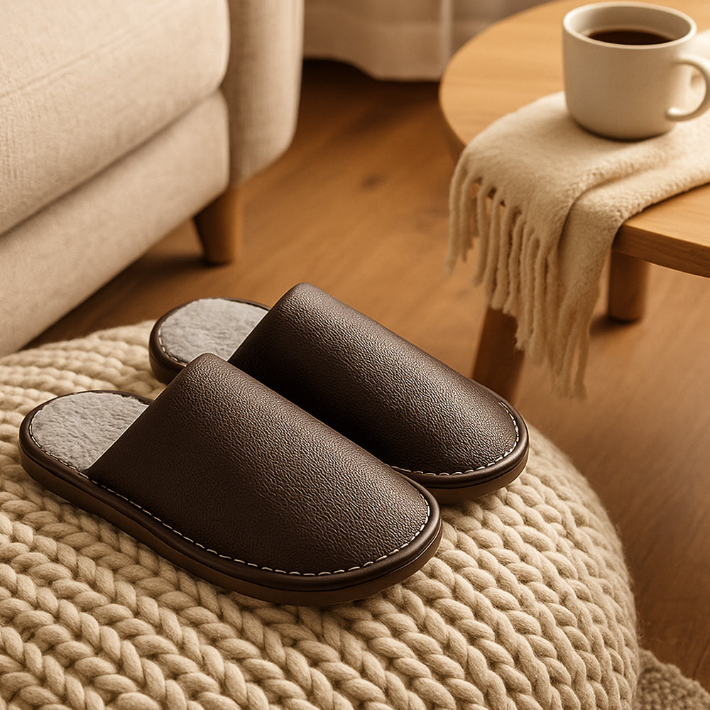 Si farvel til kalde gulv og slitne føtter. Disse hjemmeskoene i mykt PU-skinn er fôret med myk kunstig ull, som gir deg en varm og omsluttende komfort – perfekt for avslapning hjemme. Det enkle slip-in designet gjør dem lette å ta av og på, slik at du alltid kan unne føttene dine behagelig komfort.