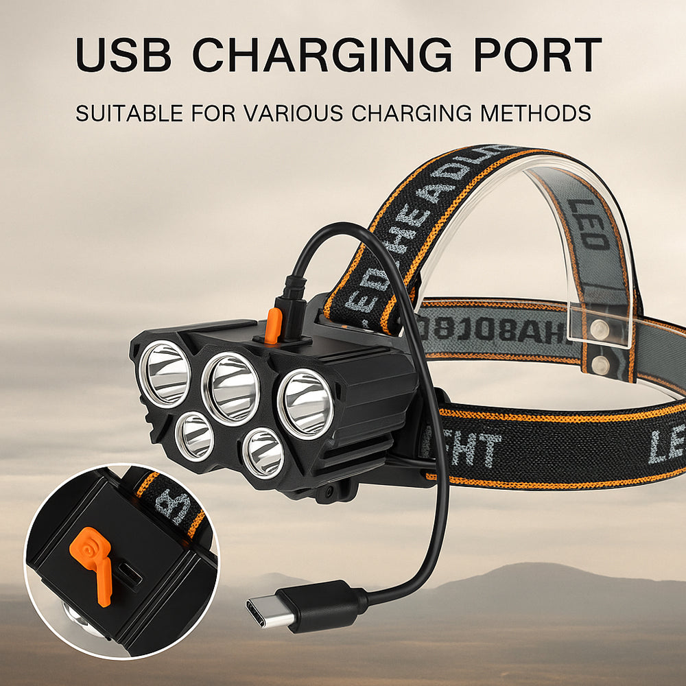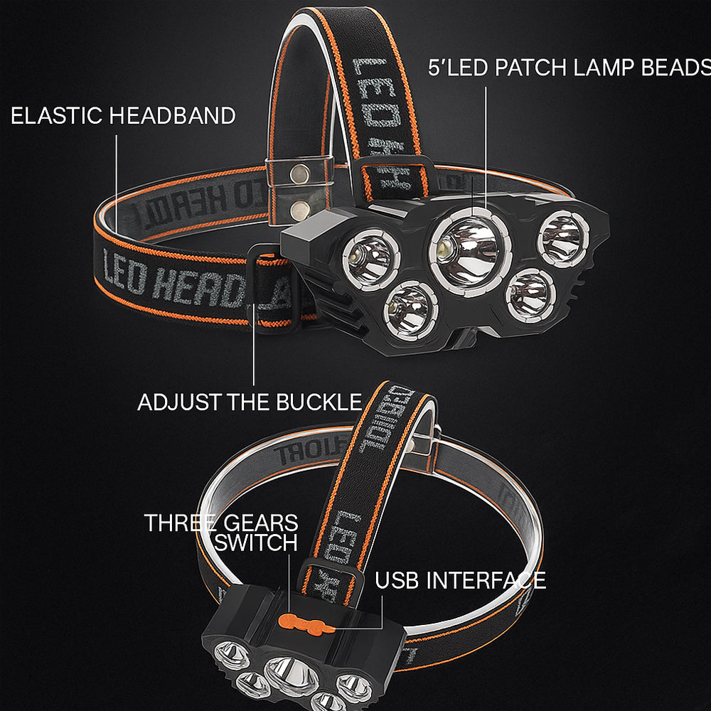Enten du vandrer i naturen, jobber i mørke omgivelser eller bare trenger frie hender, gir denne 5-LED hodelykten deg et kraftig, stabilt og justerbart lys – akkurat der du trenger det.