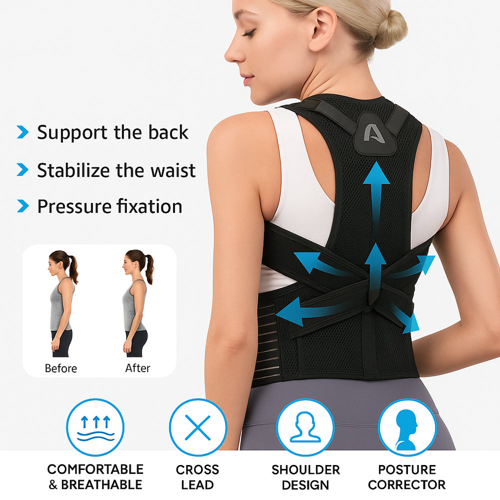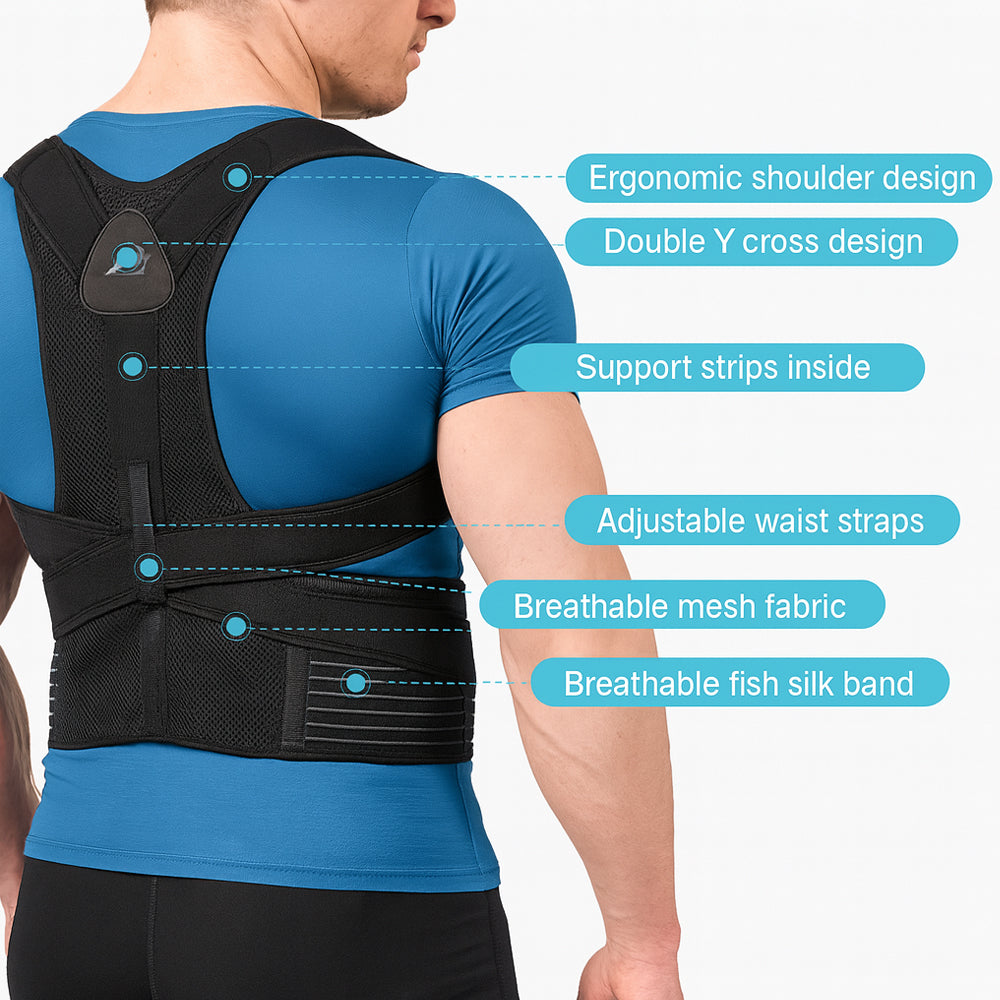 Rett opp ryggen, forbedre holdningen og reduser smerter med denne ergonomiske ryggstøtten. Med et smart dobbelt Y-design, indre støttepaneler og justerbare midjeremmer får du effektiv støtte som hjelper deg å korrigere kroppsholdningen og skape varige, sunne vaner.