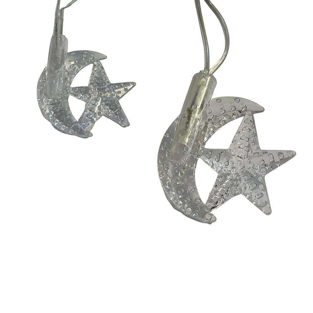 Virkelig vakker og stemningsfull LED-lyslenke på 3,5 meter som gir en hyggelig atmosfære uansett årstid og hvor enn du ønsker å bruke lyslenken. Lyslenken har vakre, gjennomsiktige, blinkende måner og stjerner som hver er fordelt med 15 centimeters avstand, og hver med en diameter på 4 centimeter. Lenken er kun beregnet til innendørs bruk.