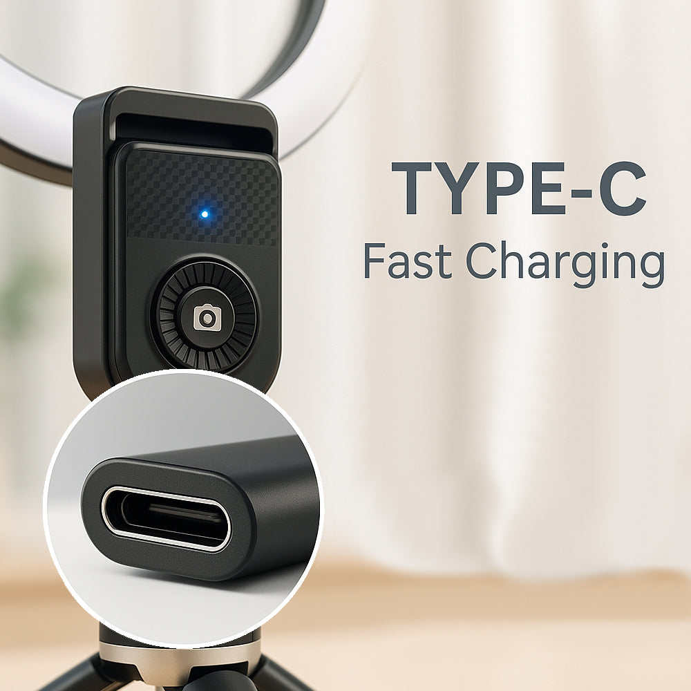 Stabil belysning til video, selfies og produktfoto. Denne 10" LED ring light leveres med et allsidig stativ opp til 2,3 meter, roterbar mobilholder og innebygd Bluetooth – slik at du raskt finner riktig lys til sminke, livestreaming, møter og innhold.