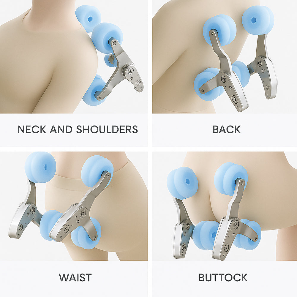 Fleksible silikonhoder arbeider dypt og realistisk i nakke, skuldre, rygg, midje og sete. Intensitet og hastighet kan justeres via nettbrett eller stemmestyring for en personlig massasjeopplevelse.