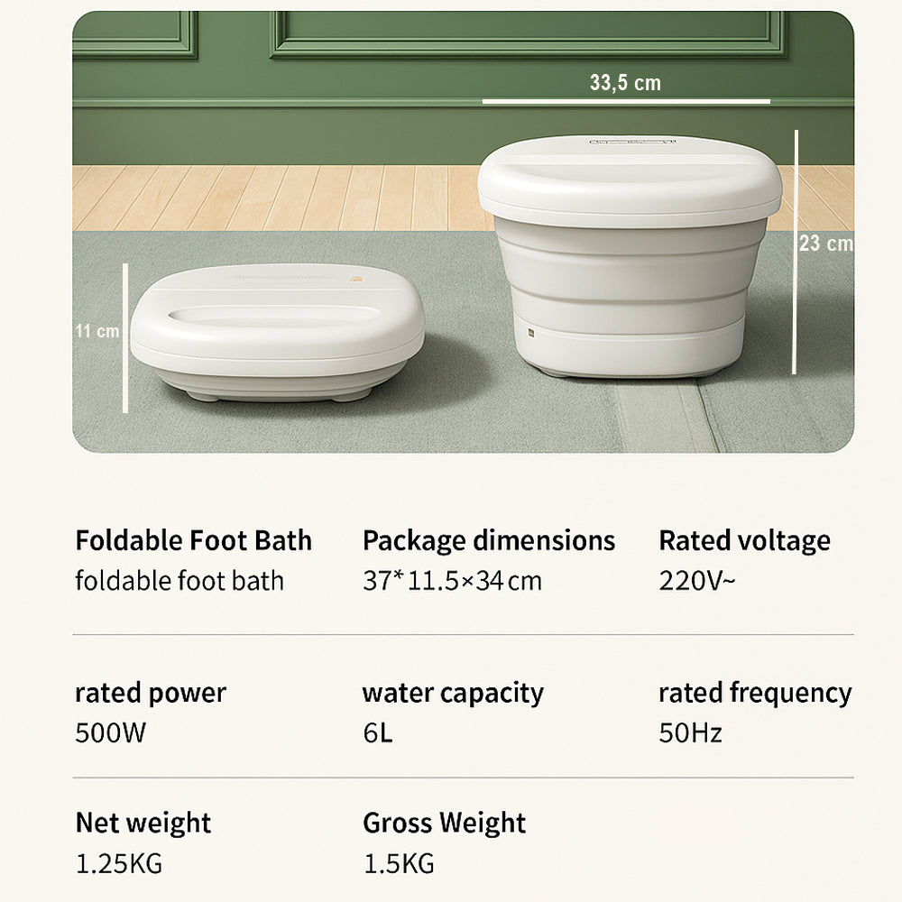 Skjem bort føttene dine med et sammenleggbart fotspa som kombinerer kraftig varme, avansert massasje og maksimal sikkerhet. Perfekt for deg som ønsker rask avslapning, bedre blodsirkulasjon og varme, velstelte føtter etter en lang dag.